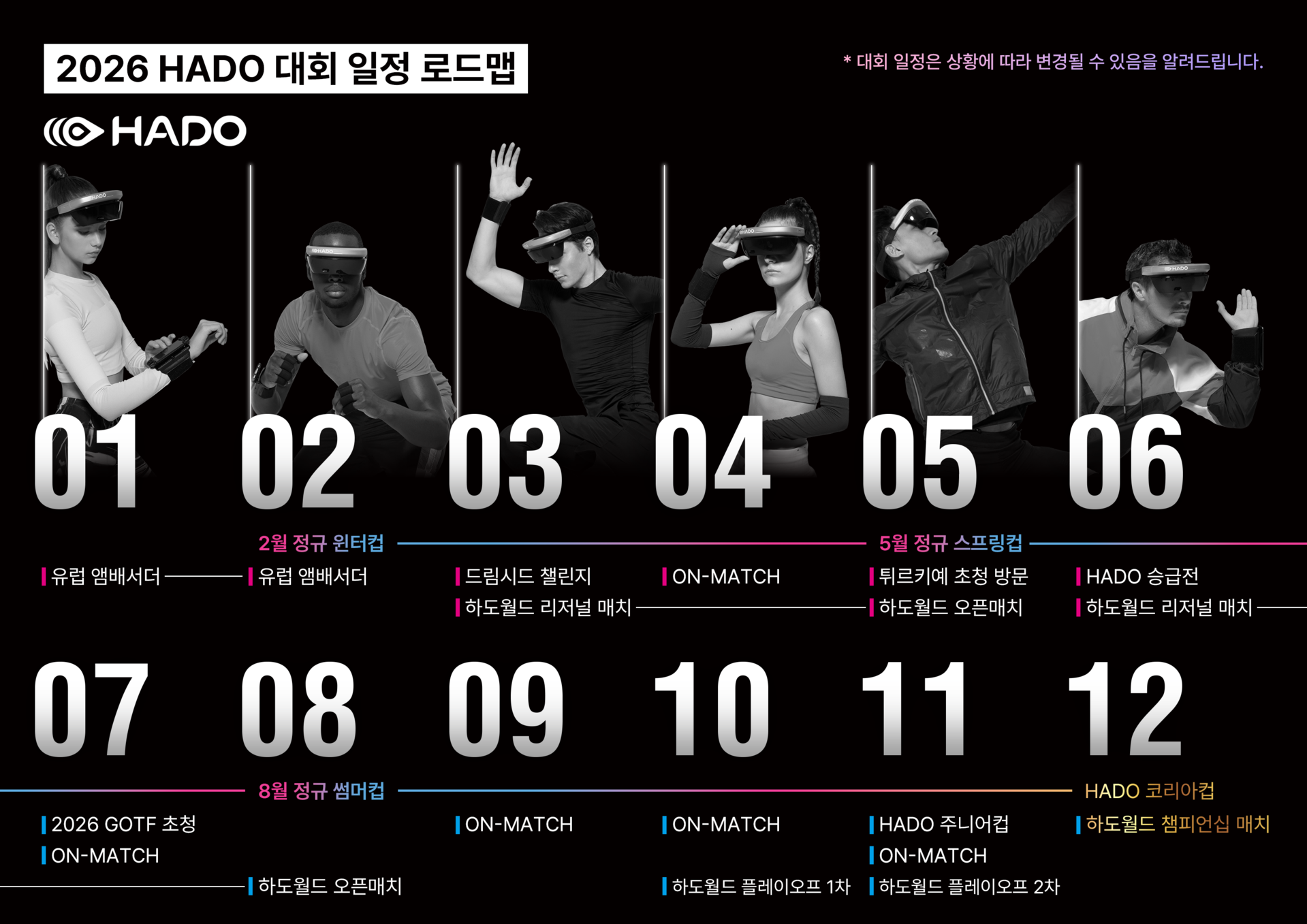 일정은 언제든지 변경될 수 있으며, 새로운 프로그램이 시작될 수 있습니다. 항상 성장하는 HADO가 되겠습니다.